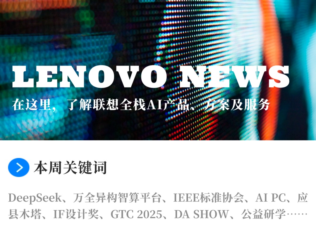 聯(lián)想一周|萬全異構(gòu)智算平臺發(fā)布新版;率先將DeepSeek引入制造領(lǐng)域