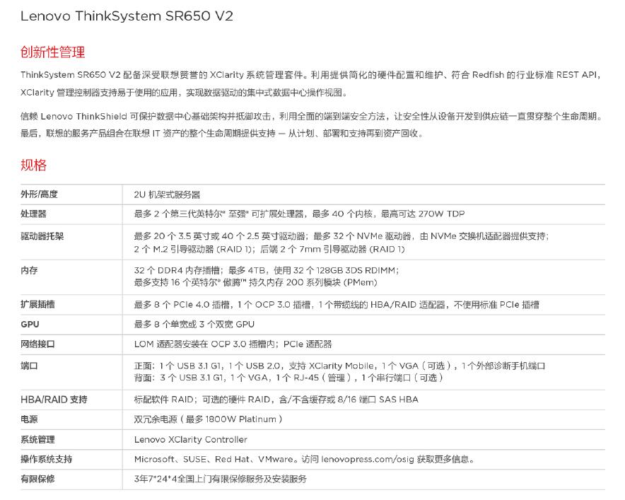 ThinkSystemSR650V2機架式服務器