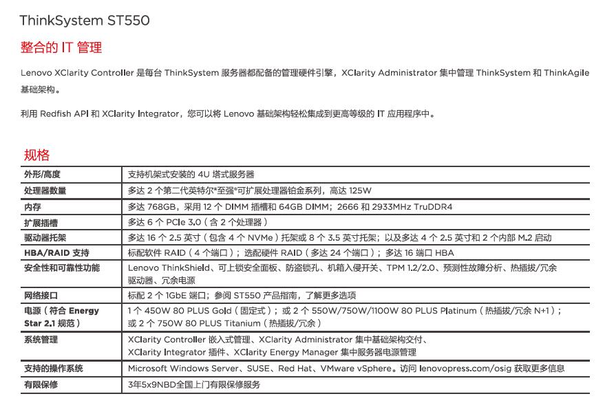 ThinkSystem ST550塔式服務(wù)器