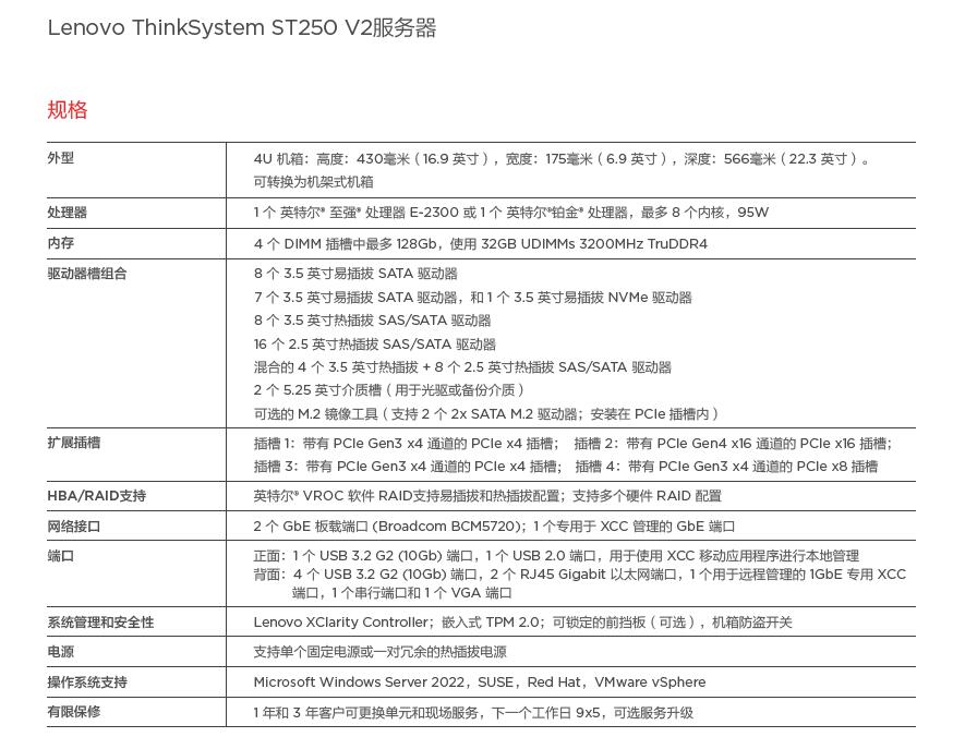 ThinkSystem ST250 V2塔式服務器